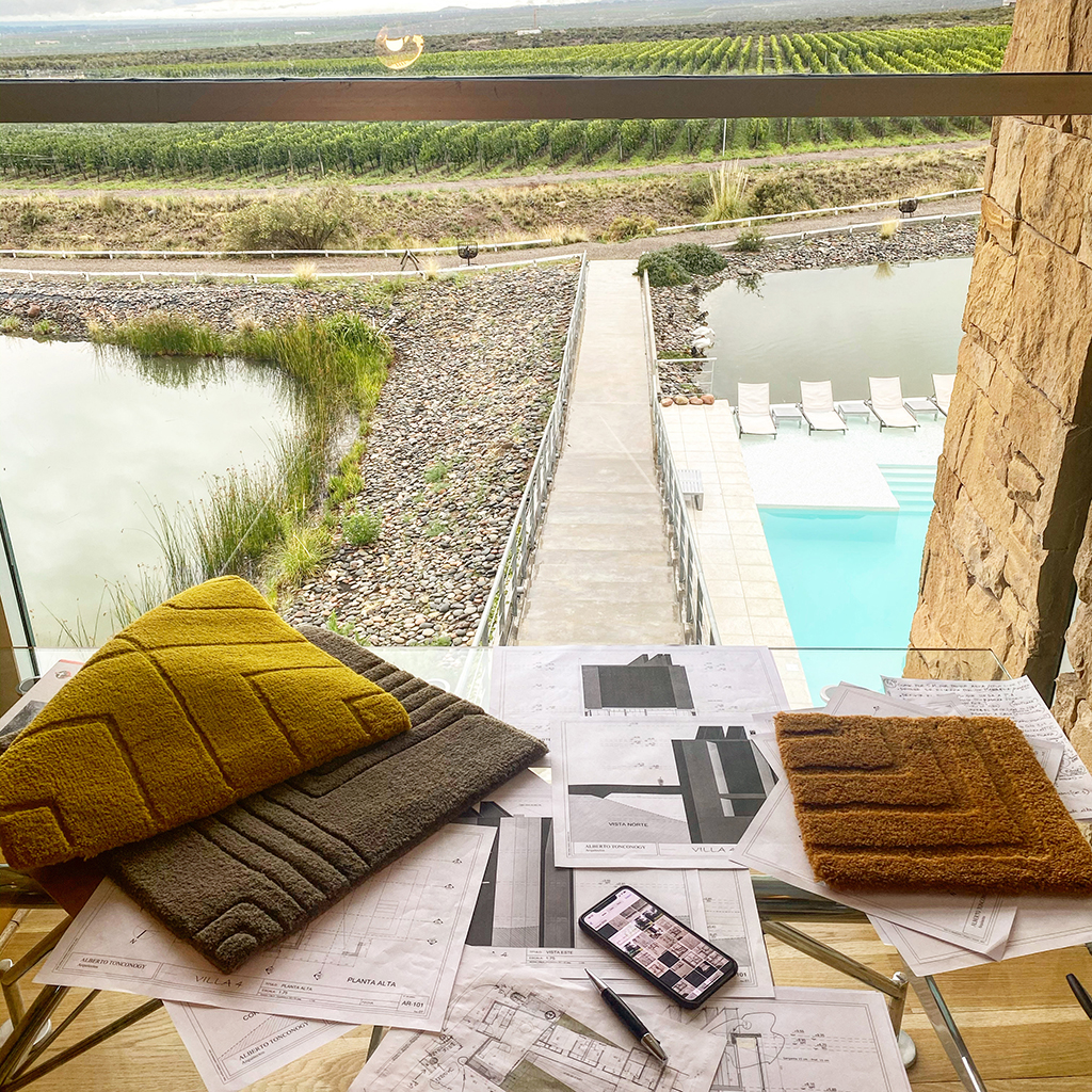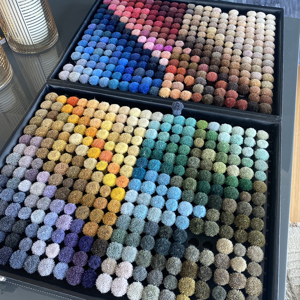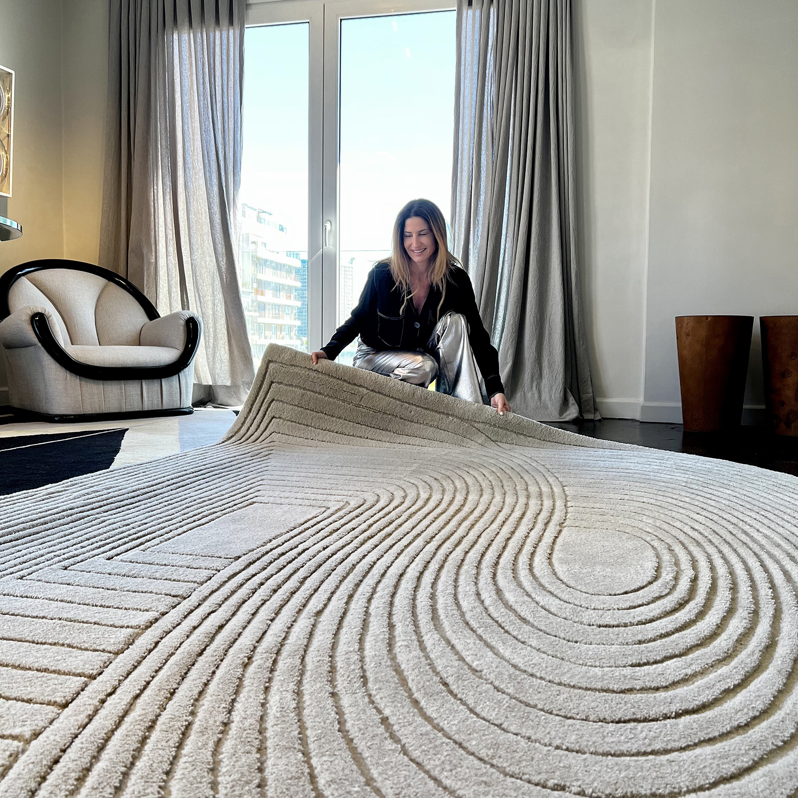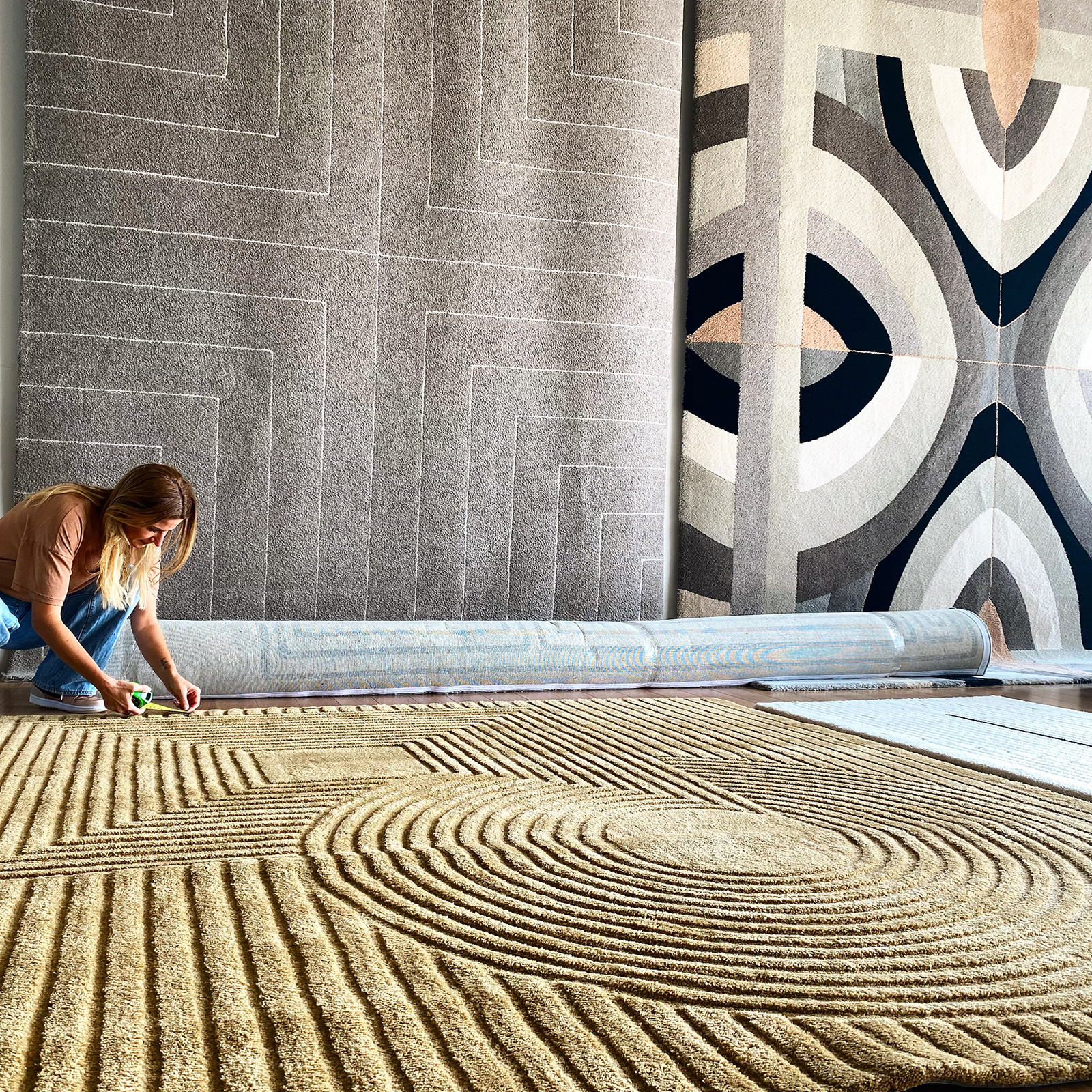 The carpets are custom created with exact specications for yarn type, shape, size, and color. The materials used are Tibetan wool, silk, cashmere and bamboo silk, which can be combined in multiple ways, as well as the type of nishes such as cut-pile, loop or hand carved among others.